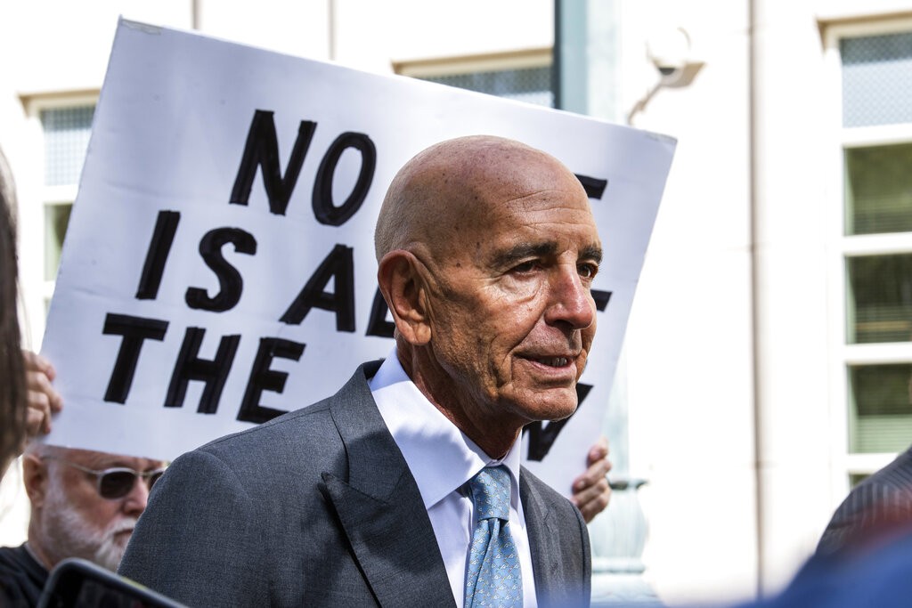 Ex-executivo, que foi um dos maiores doadores da campanha de Donald Trump, presidiu o comitê inaugural do ex-presidente dos EUA em 2017. Ele foi acusado por promotores de intermediar no governo norte-americano em favor do país do Oriente Médio. O ex-executivo e doador da campanha eleitoral de Donald Trump Tom Barrack, na chegada a Tribunal para julgamento, em 20 de setembro de 2022.