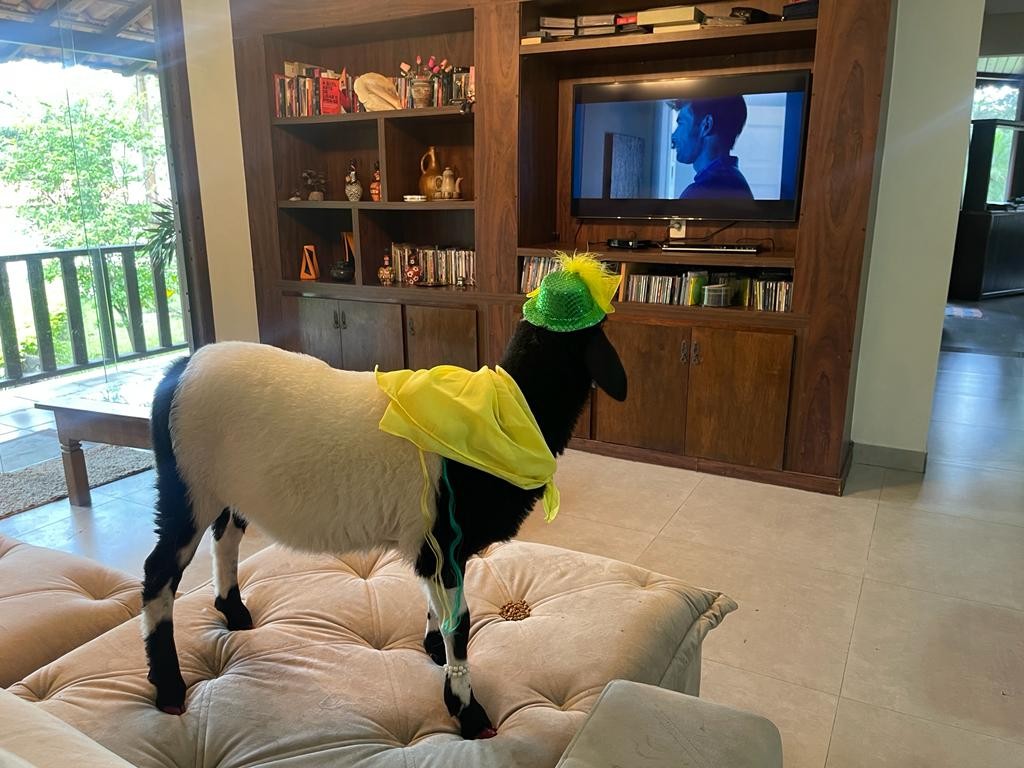 Brasileiros estão na torcida pela seleção e até os bichos entraram no clima verde e amarelo. É o caso da ovelha Bruninha que “se arrumou” para “torcer”.
