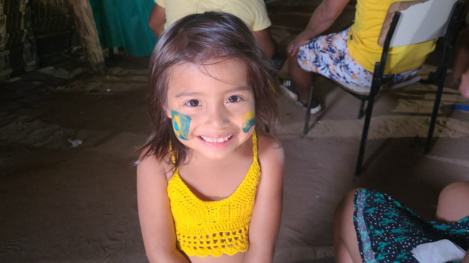 Os indígenas são do povo paresi e se vestiram com camisetas da seleção, roupas verde e amarelo, acessórios e pintaram os rostos com as cores para dar aquela força à seleção brasileira.