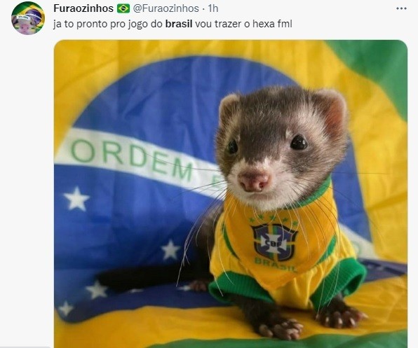 Segundo jogo da seleção brasileira no Mundial do Catar começou às 13h. Imagem de furão com uniforme da seleção que foi postada no Twitter horas antes do início do jogo do Brasil contra a Suíça