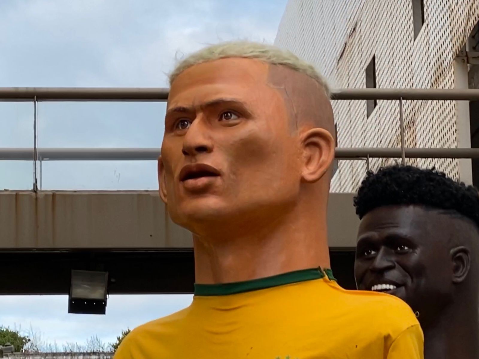 Depois de ser alvo de piadas e críticas na internet, boneco que homenageia o atacante da Seleção Brasileira passou por mudanças. Nova versão estreou nesta segunda-feira (5). Boneco gigante de Richarlison passou por “harmonização facial”