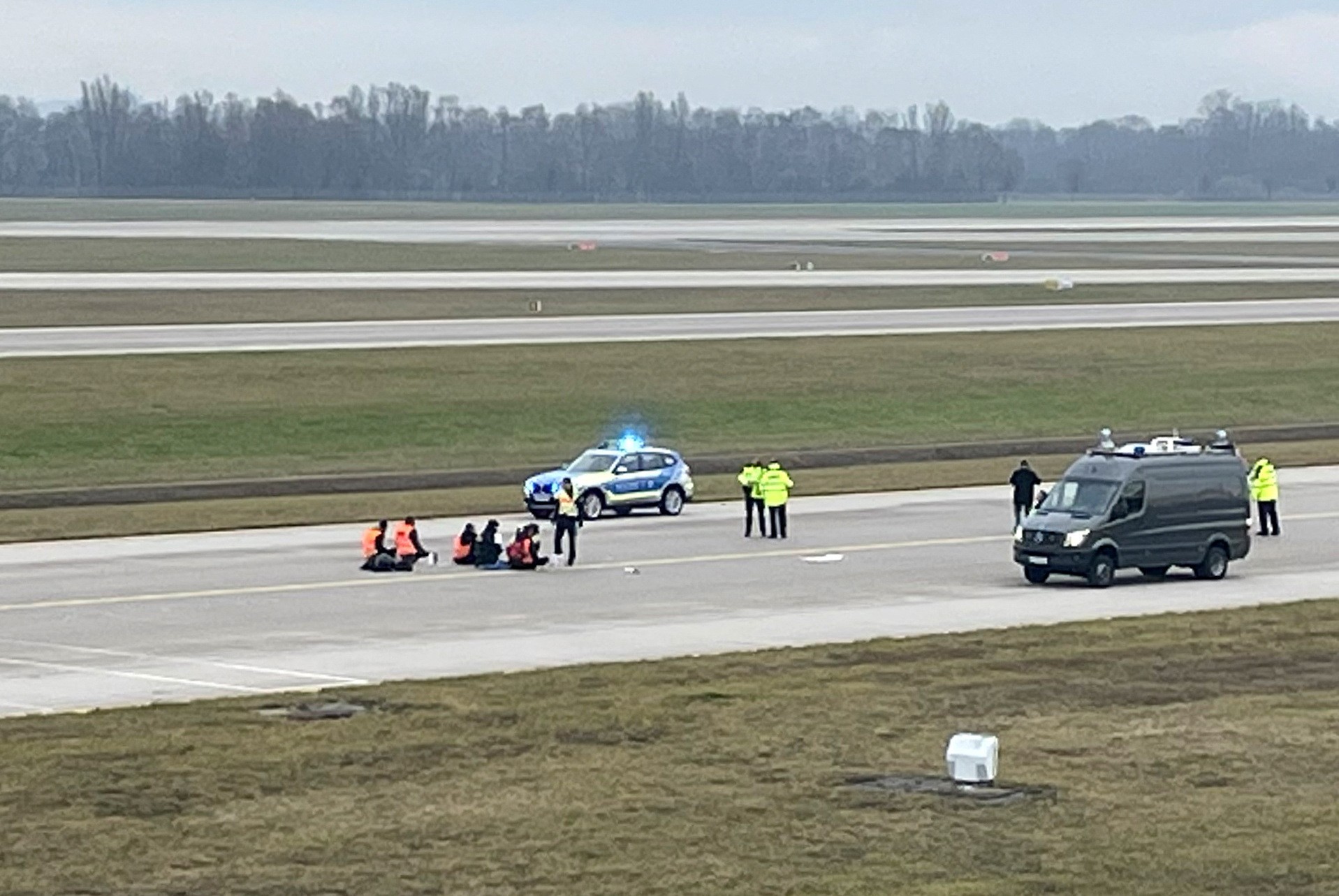 A polícia no sul da Alemanha disse que os manifestantes estavam sendo descolados da pista do aeroporto de Munique e levados sob custódia, e os protestos foram dispersados.