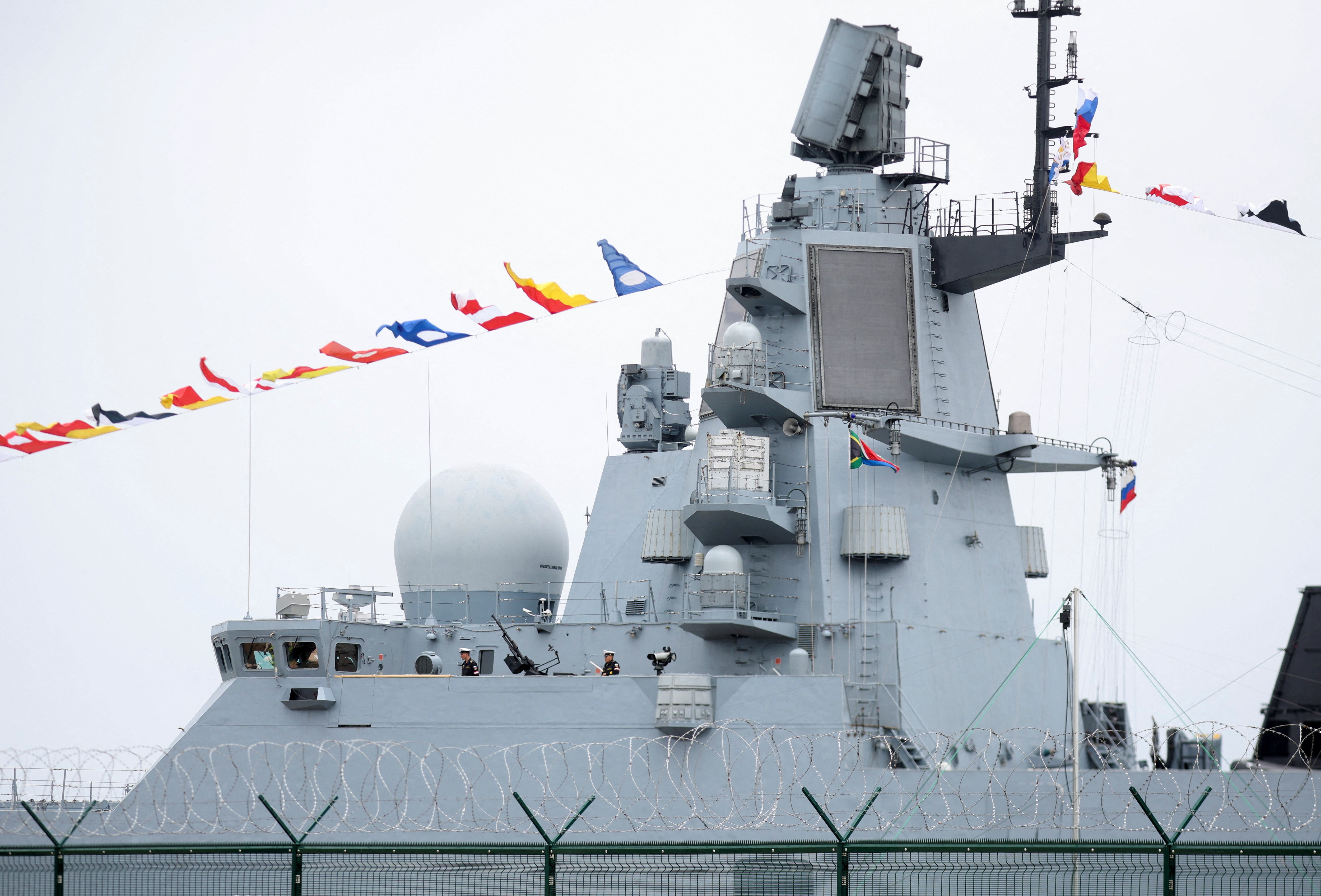 A fragata da Rússia, equipada com mísseis de cruzeiro hipersônicos de nova geração, chegou ao porto sul-africano de Richards Bay para exercícios que incluirão a China, informou a agência de notícias estatal russa RIA nesta quarta-feira (22).