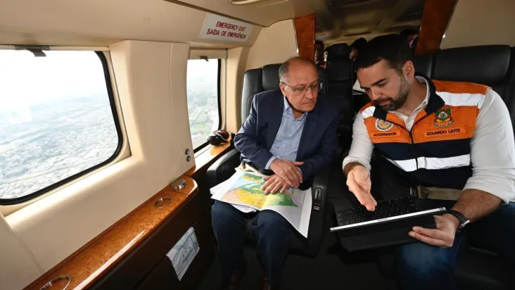 Alckmin desembarcou em Canoas (RS) e de lá seguiu para Lajeado, no Vale do Taquari — região que concentra o maior número de mortes confirmadas no maior desastre natural da história gaúcha. Na viagem, ele é acompanhado pelo governador do Rio Grande do Sul, Eduardo Leite (PSDB), e uma comitiva de ministros.