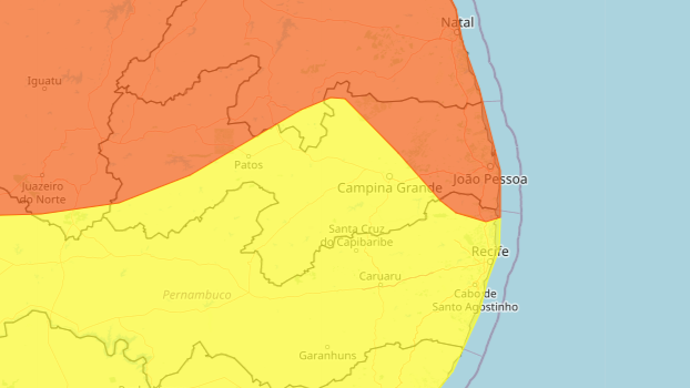 O Inmet emitiu alerta laranja de perigo de chuvas intensas para o norte do estado de Pernambuco. Na capital, está vigente o alerta amarelo de perigo potencial.