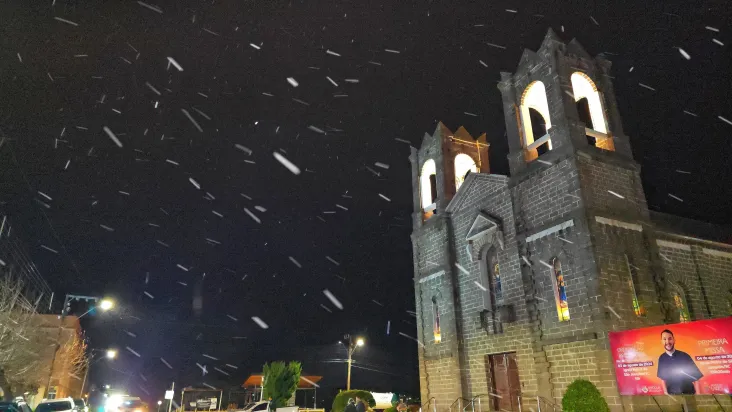 A cidade de São Joaquim, no sudeste de Santa Catarina, teve neve e temperatura de 0,3°C na noite de sexta-feira (9), às 23h, de acordo com dados do Instituto Nacional de Meteorologia (Inmet).