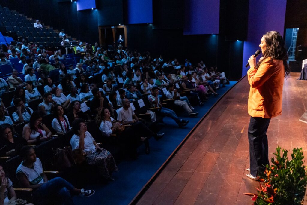 A coordenadora dos Anos Finais da Seduc, Lecilda Araújo, falou sobre a missão estratégica dos educadores na implementação da proposta, reforçando o papel de transformar a escola. “Este é um programa que exige sensibilidade e coragem. Precisamos estar abertos a novas escutas e práticas que coloquem o estudante no centro da aprendizagem. Nós acreditamos realmente no poder da transformação social que a escola tem. A gente vê isso acontecendo todos os dias”, enalteceu.