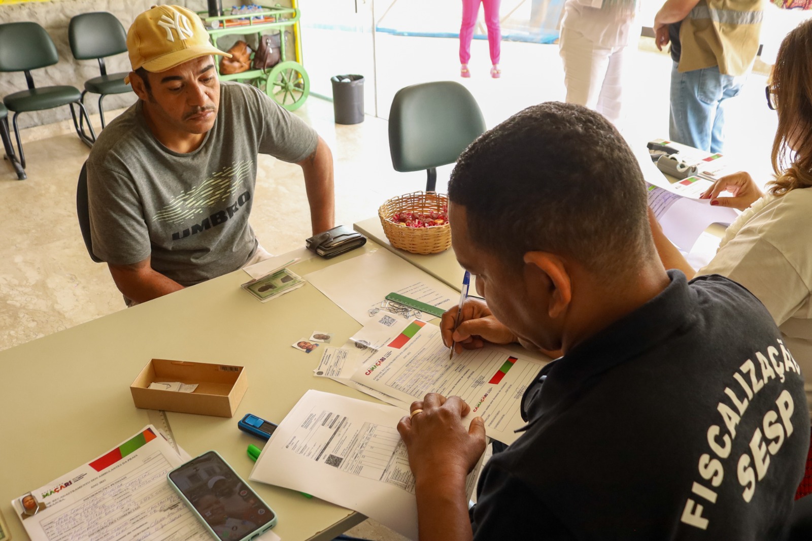 “Acho muito importante esse trabalho, é bom fazer o cadastro. Vem muita gente de fora, às vezes, vender, e a gente, que já é morador daqui, estando regularizado, é muito importante”, reconheceu dona Maria José Alves, de 52 anos. Há 40, ela vende cocada, bolachinhas de goma e lanches em geral na praia de Guarajuba, junto com seu marido, José Carlos, de 63 anos.