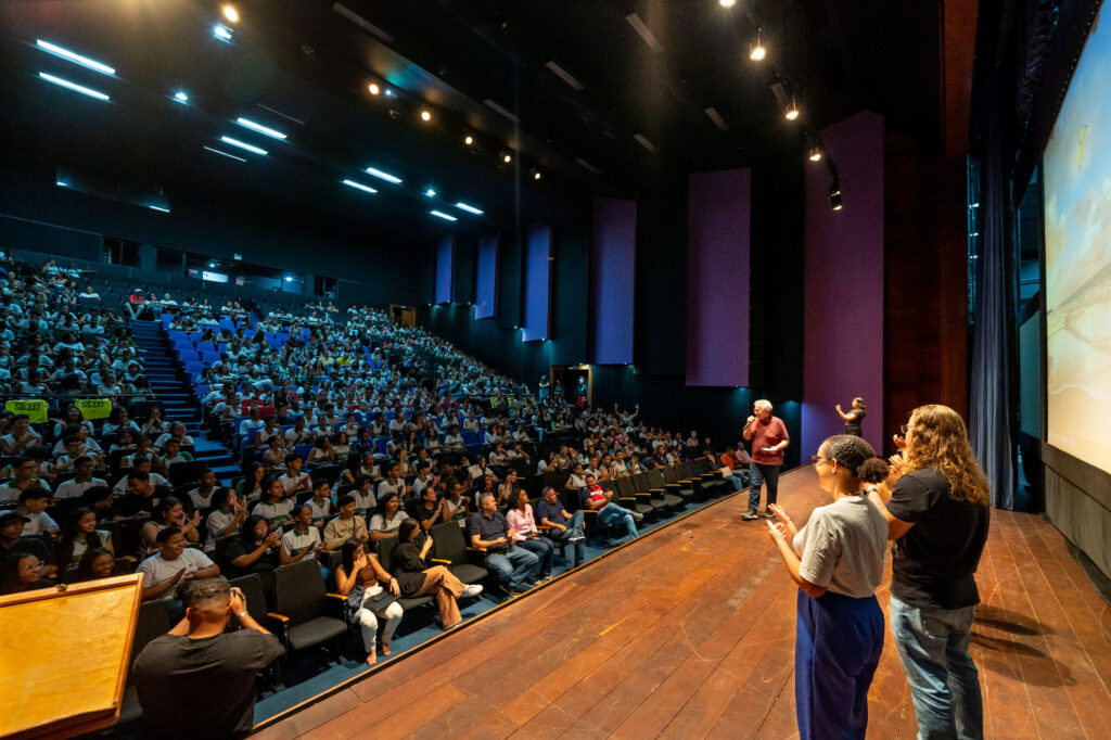 A atividade reuniu estudantes de diversas escolas municipais no Teatro Cidade do Saber (TCS), tanto pela manhã quanto à tarde, consolidando iniciativas que vêm sendo desenvolvidas em sala de aula ao longo do ano letivo, além de reforçar os conteúdos previstos nas matrizes de referência dos exames.
